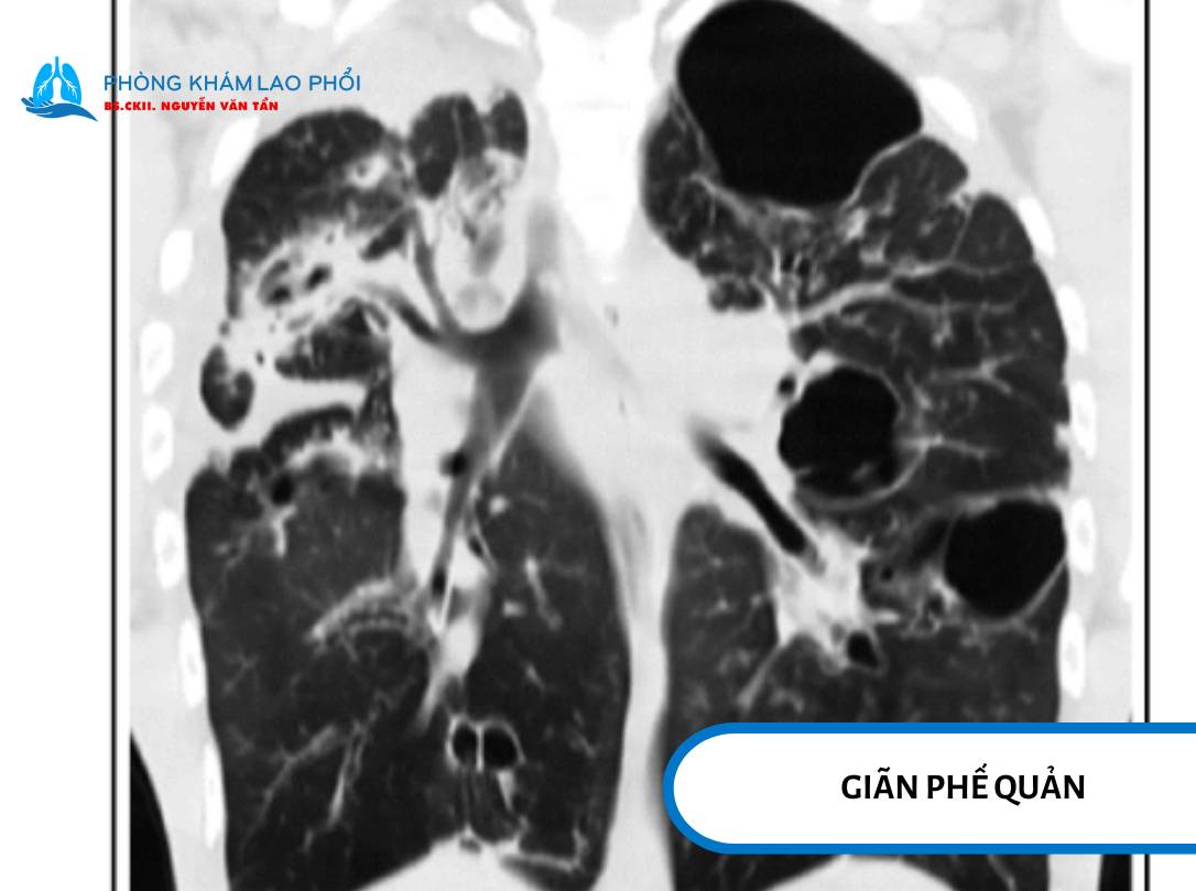Giãn phế quản là khi phế quản mất cấu trúc đàn hồi do dây xơ, viêm mạn, phá hủy thành ống khí.